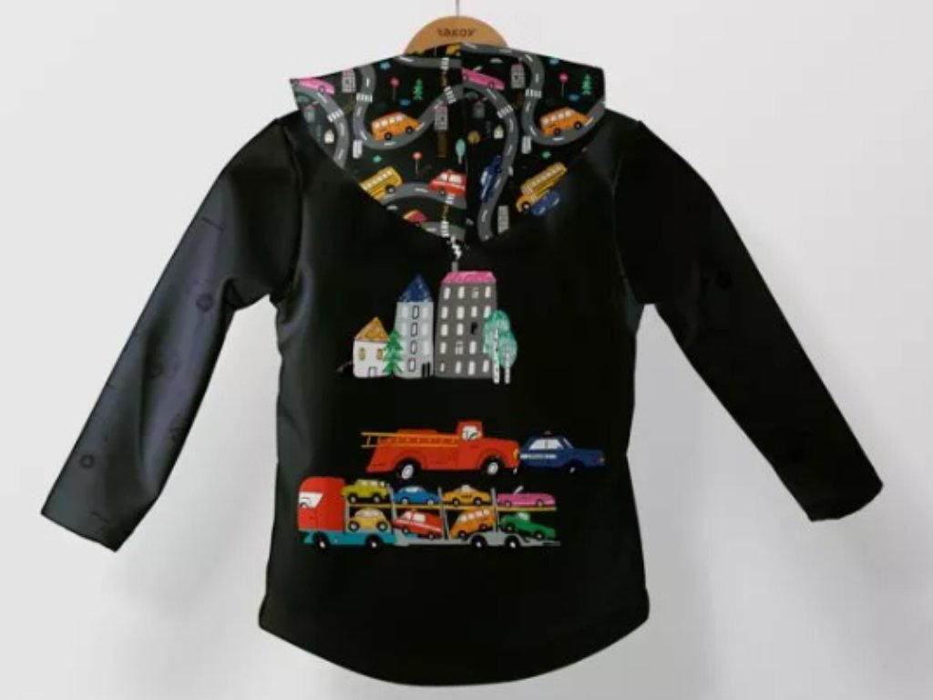 Chlapčenská softshellová bunda, farebné autá