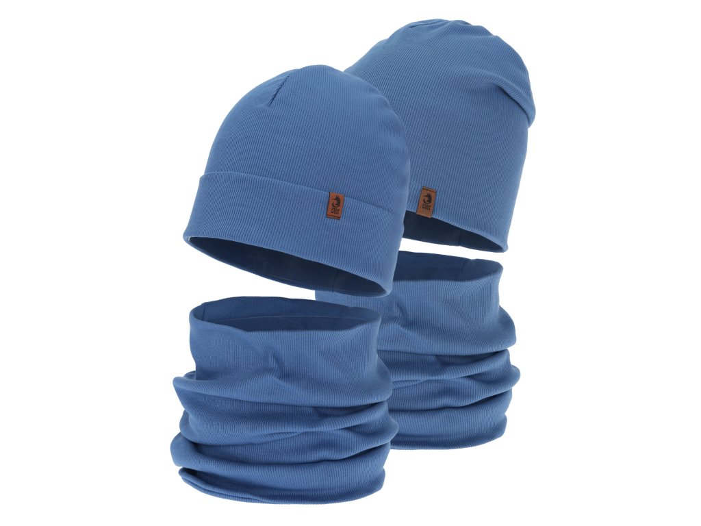 Komplet je vyrobený z vysokokvalitnej bavlny, ktorá tvorí až 92% zloženia materiálu. Bavlna je prírodný materiál známy svojou priedušnosťou, mäkkosťou a príjemným pocitom na pokožke. Pridanie elastanu zabezpečuje perfektnú elasticitu, vďaka ktorej sa čiapka a tunel dokonale prispôsobia tvaru hlavy a krku. Rebrovaný úplet dodává kompletu elegantný vzhľad a zároveň zvyšuje jeho funkčnosť.