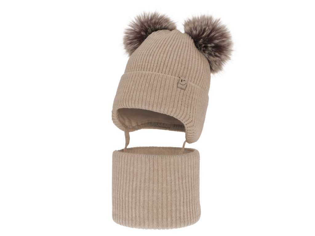 Čiapka a tunel béžový s dvoma brmbolcami Zori