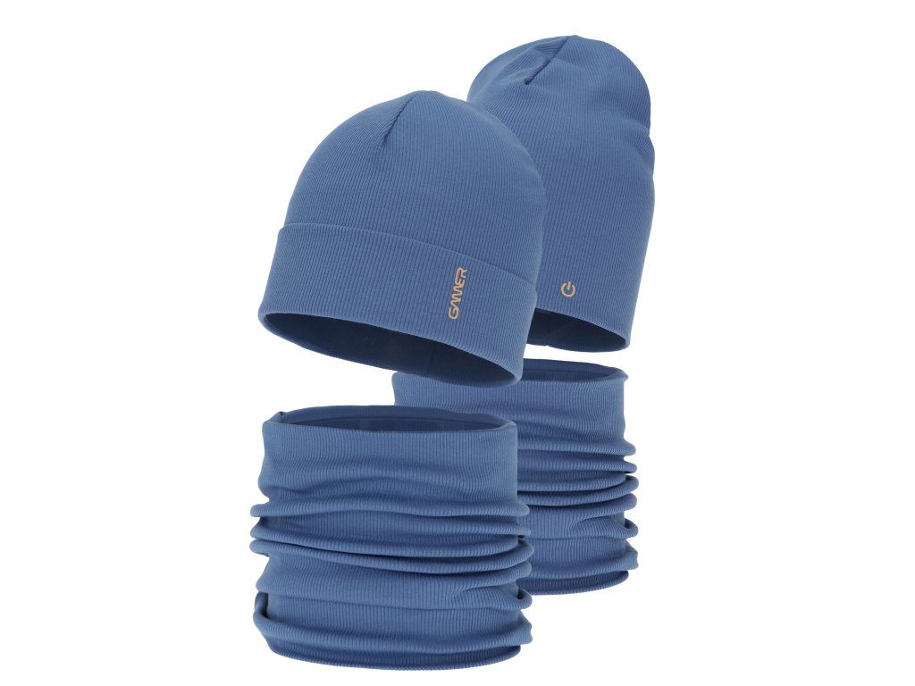 Komplet je vyrobený z vysokokvalitnej bavlny, ktorá tvorí až 92% zloženia materiálu. Bavlna je prírodný materiál známy svojou priedušnosťou, mäkkosťou a príjemným pocitom na pokožke. Pridanie elastanu zabezpečuje perfektnú elasticitu, vďaka ktorej sa čiapka a tunel dokonale prispôsobia tvaru hlavy a krku. Rebrovaný úplet dodává kompletu elegantný vzhľad a zároveň zvyšuje jeho funkčnosť.