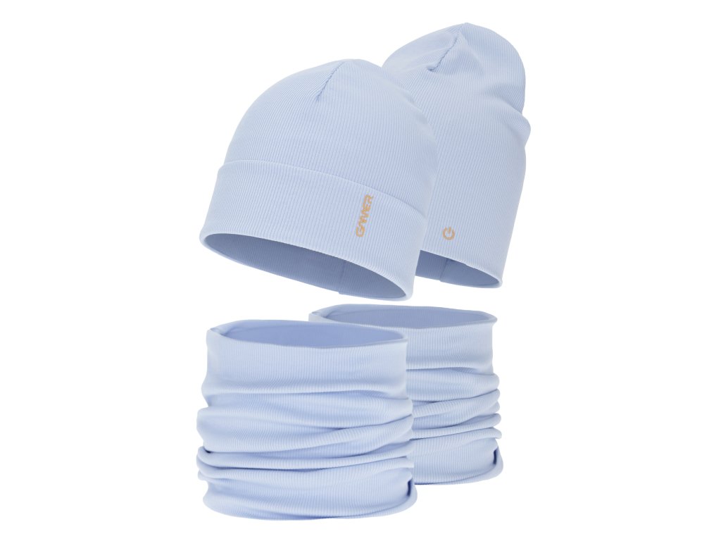 Komplet je vyrobený z vysokokvalitnej bavlny, ktorá tvorí až 92% zloženia materiálu. Bavlna je prírodný materiál známy svojou priedušnosťou, mäkkosťou a príjemným pocitom na pokožke. Pridanie elastanu zabezpečuje perfektnú elasticitu, vďaka ktorej sa čiapka a tunel dokonale prispôsobia tvaru hlavy a krku. Rebrovaný úplet dodává kompletu elegantný vzhľad a zároveň zvyšuje jeho funkčnosť.