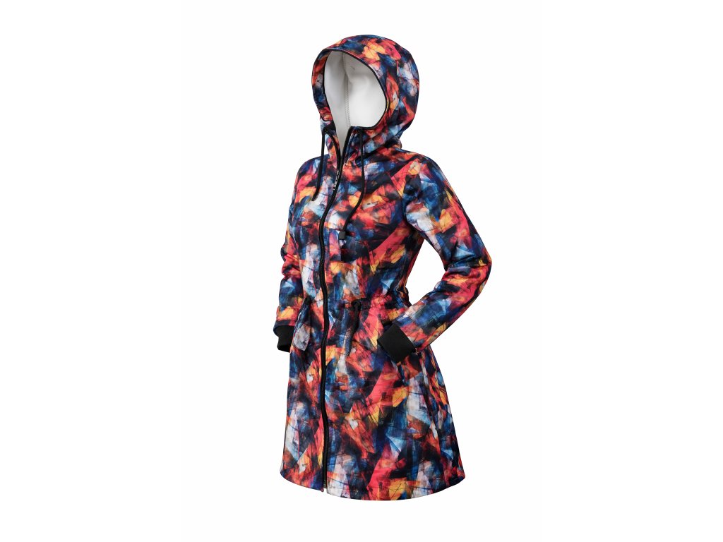 Táto dámska softshellová bunda s fleecovou podšívkou a abstraktným vzorom spája praktickú ochranu s komfortom a jedinečným štýlom, ideálna pre každodenné nosenie aj výlety do prírody.