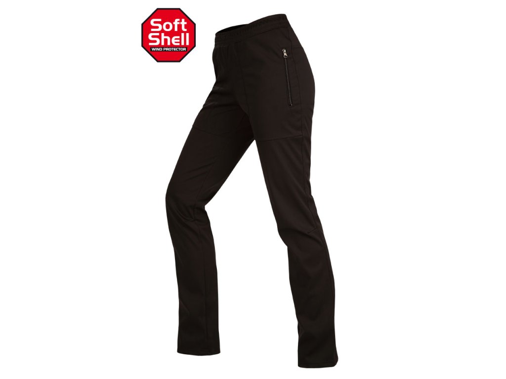 Nohavice dámske softshellové. Jednoduchý strih so zipsovými vreckami. Elastický pás so šnúrkou na stiahnutie. Technický materiál používaný hlavne na výrobu vrchného oblečenia pre outdoorové aktivity. Vnútorná strana je počesaná. Odolný voči poveternostným vplyvom. Napriek nízkej hmotnosti má vynikajúce tepelné vlastnosti.