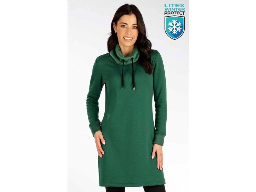 Dámske zateplené šaty mikinové s dlhým rukávom, zelené