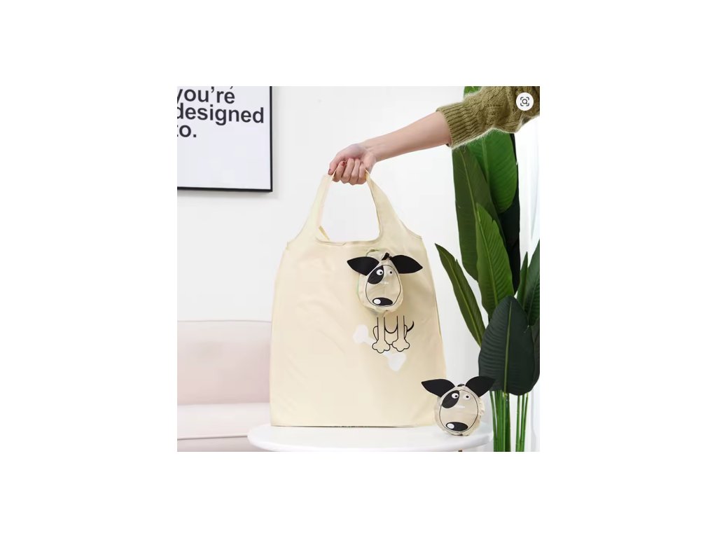 ✔ Ľahká a skladná – taška sa jednoducho zloží do malej kapsičky v tvare psíka, takže nezaberie miesto v batohu ani kabelke.