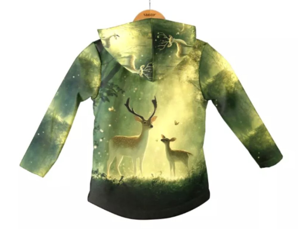 Dizajn: Roztomilá potlač so spiacimi srnkami, ktorá poteší každé dieťa. Kapucňa a rukávy sú zdobené jemnými vzormi, ktoré ladia s hlavným motívom.