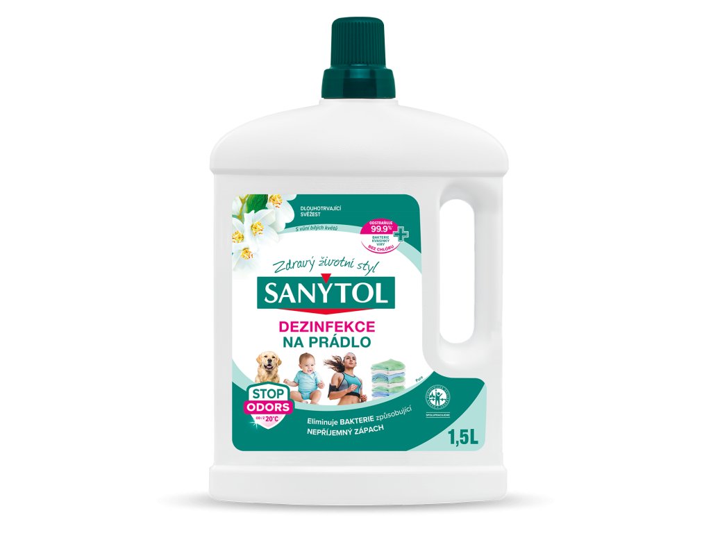 Sanytol Dezinfekcia na bielizeň zaistí dokonale čistú a sviežu bielizeň bez baktérií a nepríjemného zápachu. Vďaka trojitému účinku eliminuje 99,9 % baktérií, Candida albicans a vírusov, vrátane ľudského koronavírusu 229E a H1N1. Najviac obsahuje inovatívnu technológiu STOP ODORS, ktorá: