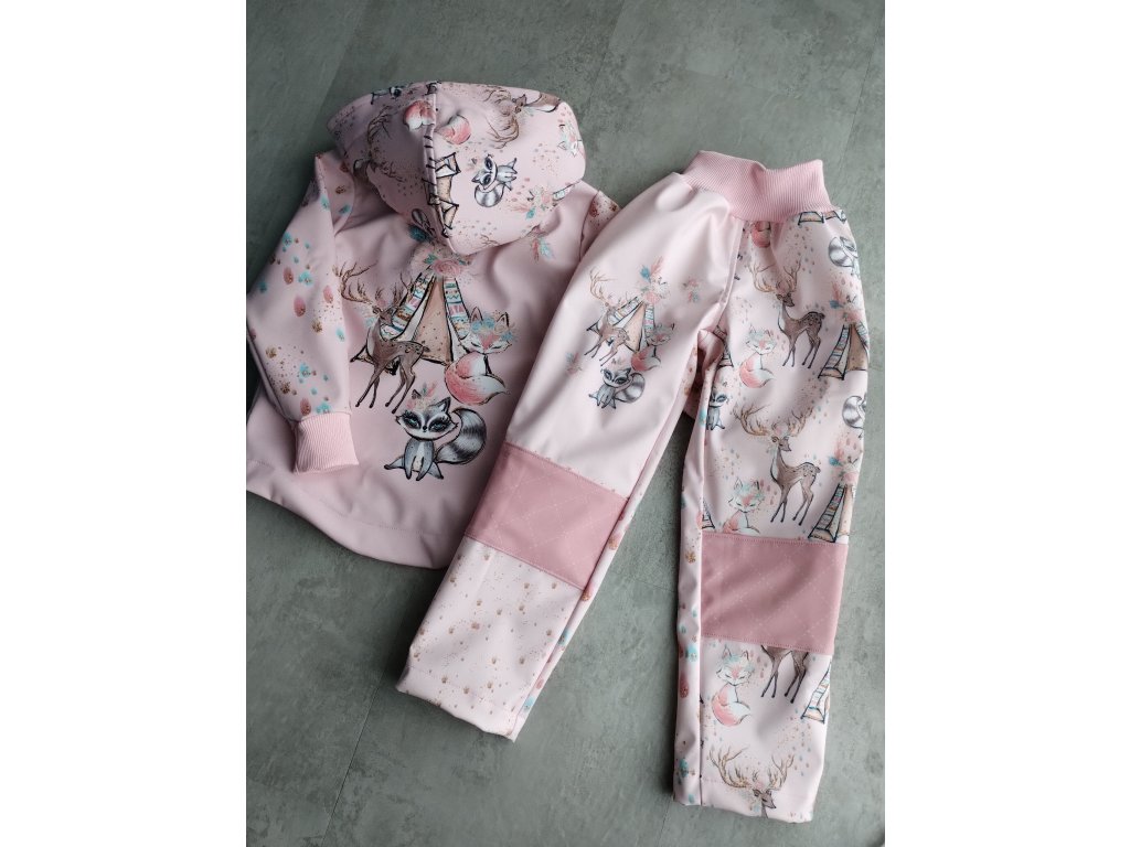 Dievčenský set softshellová bunda a nohavice s fleecom, indian