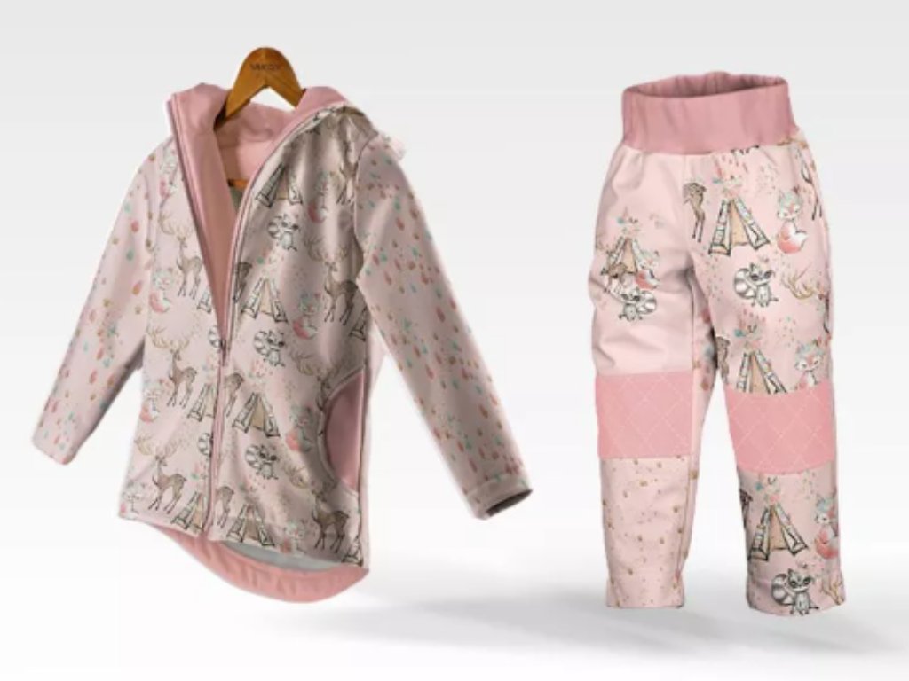 Set detská softshellová bunda a nohavice s fleecom, indian