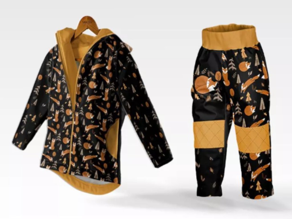 Set detská softshellová bunda a nohavice s fleecom, líška