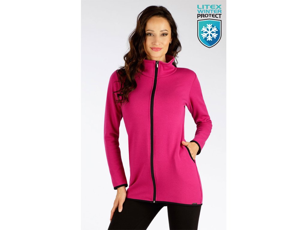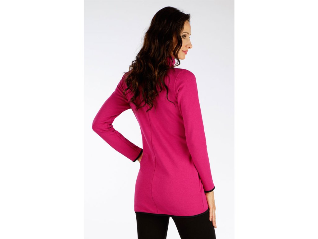 Mikina dámska dlhá na zips. Stojací golier s príjemným vnútorným počesaním. Efektné čierne lemovanie. Zapínanie na zips. Praktické vrecká. Materiál mikiny s vyšším vnútorným počesaním je veľmi teplý a príjemný na nosenie. Vďaka bavlne a elastanu je krásne mäkký a pružný. Veľmi pekná žiarivá farba. Dĺžka mikiny cca 80 cm.